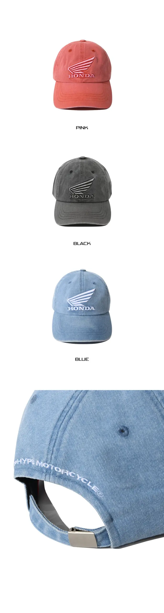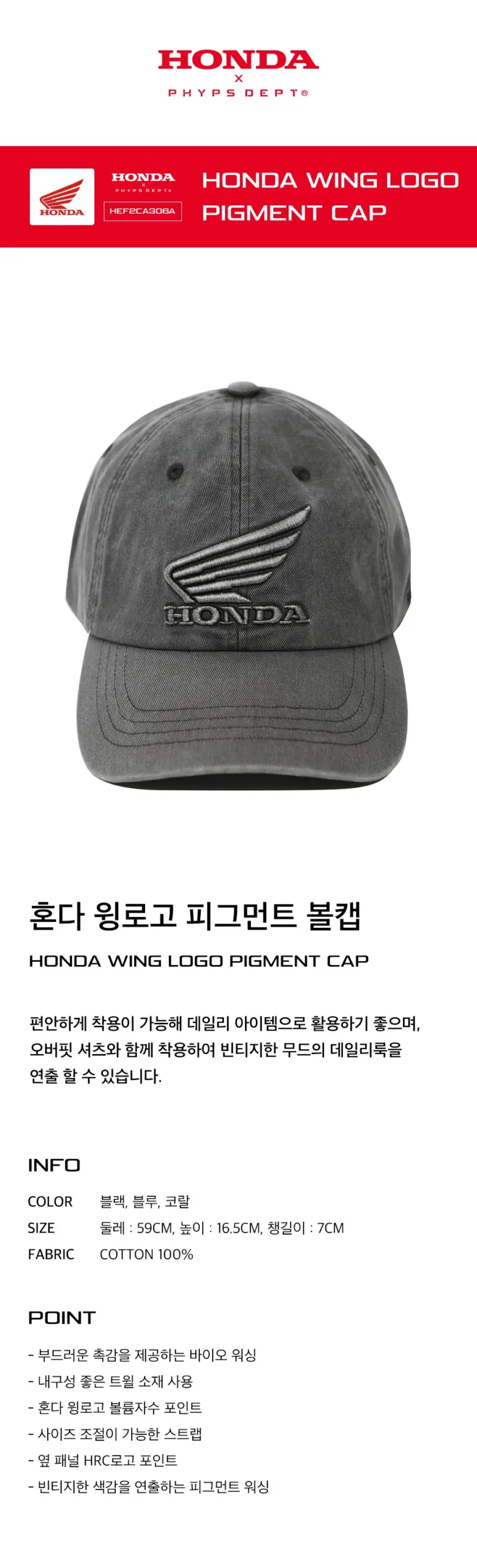 Honda Wing logo Pigment Cap HRC 黑灰色牛仔布料舊化 刺繡LOGO棒球帽