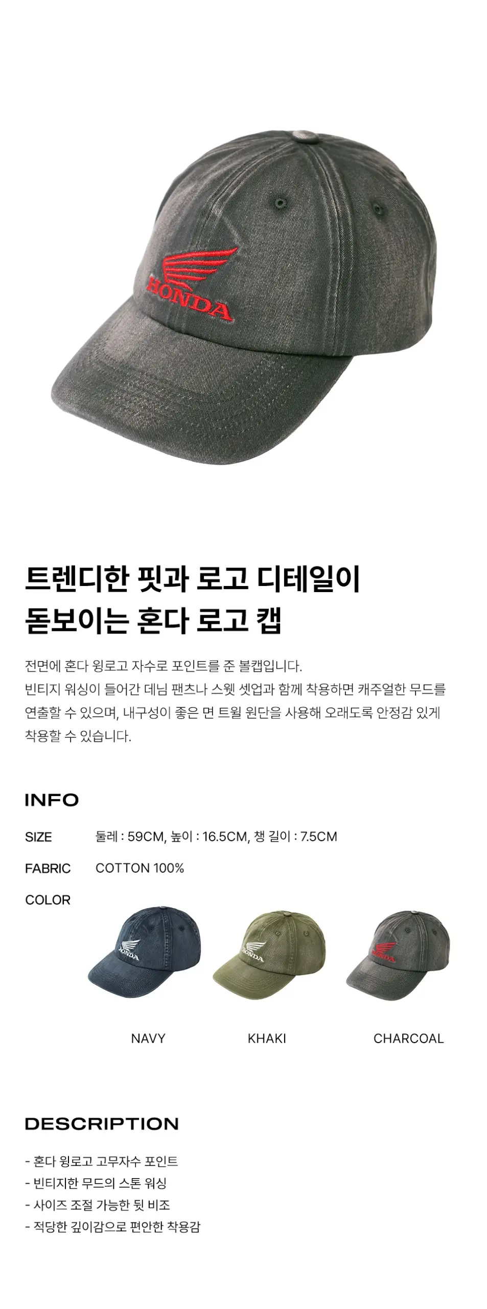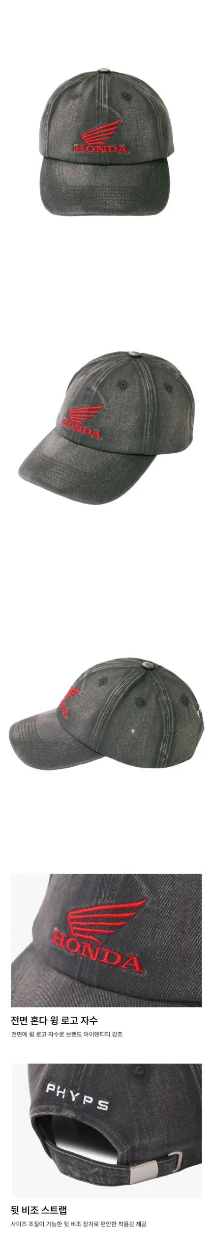 Original Wing Logo Vintage Cap 黑色牛仔布料舊化Honda刺繡LOGO棒球帽